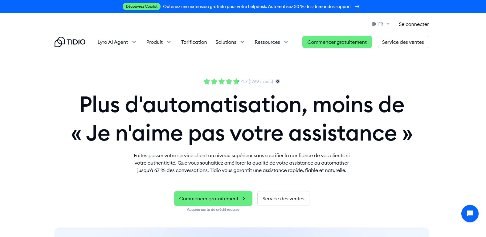 ❌ Canaux de déploiement moins étendus que Tidio ou Wonderchat (pas de multicanal messaging)